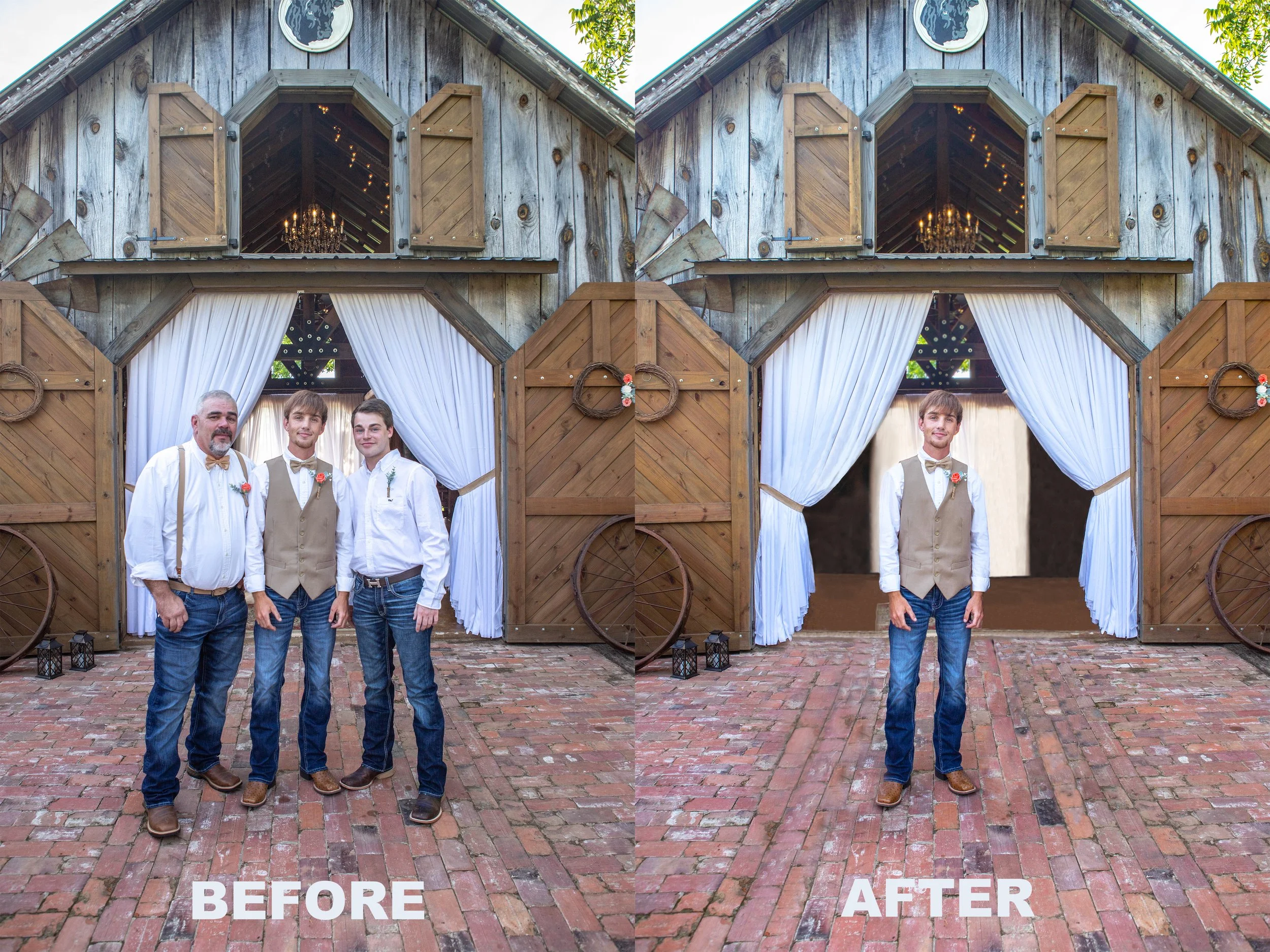 Request: Remove everyone but the Groom, also removed red solo cup and keys on porch corners.